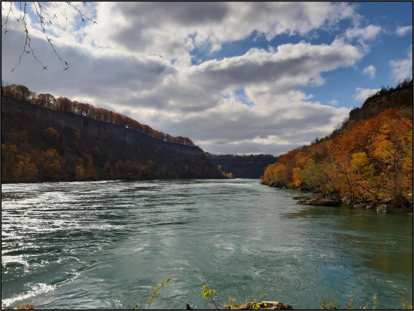 We stopped several times along our trail to marvel at the tempestuous waters, the boulders, and the American shore. Two countries, one river! I suddenly realized how close we are to the neighbouring country: U.S.