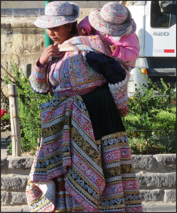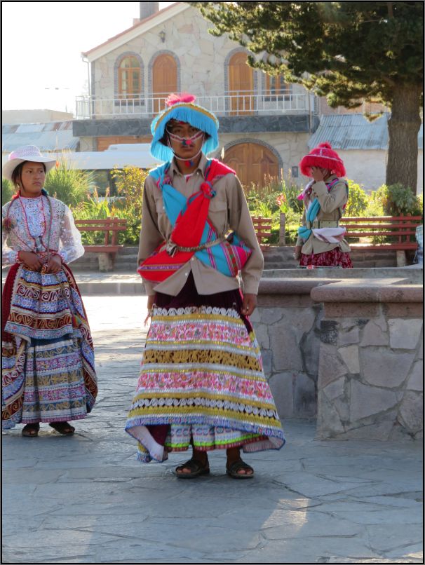 1. II was pleased to find the traditional Peruvian clothes, still widely worn in the countryside and less in the cities. Especially in the Colca valley where Collaguas and Cabanas are distinguished by the shape of their hats.