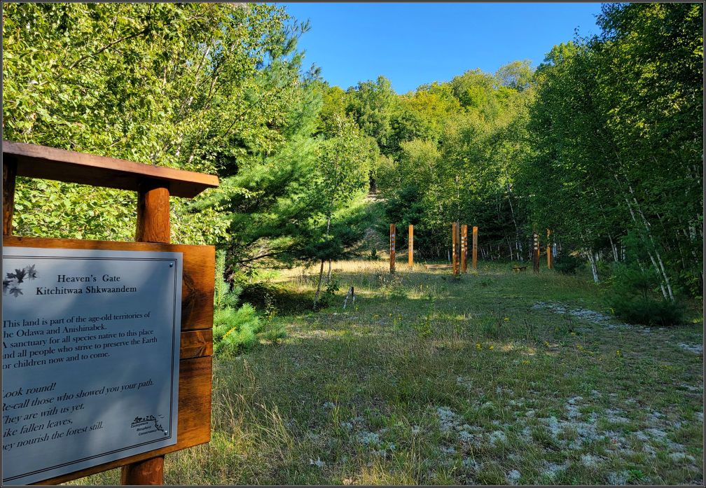 The connecting path from the parking lot to the main trail starts with a gentle slope, giving us some time to pick up a steady pace. We passed by a sanctuary, a sacred place, part of the age-old territories of the native Odawa and Anishinabek: a reminder that we should all appreciate Mother Nature, and a nudge that we should all do better to preserve the Earth for future generations.