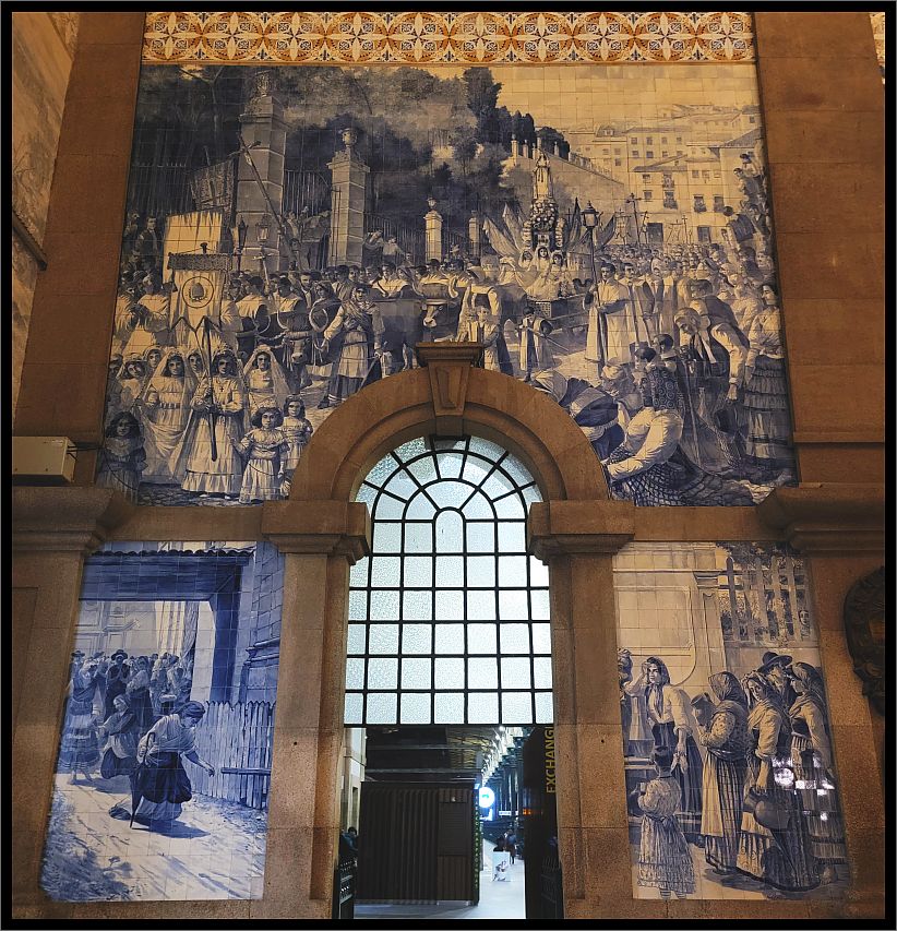 Several scenes and compositions depicting historical events from Portuguese history caught our attention. The tiling project took 11 years to complete, from 1905 to 1916, and both blue and polychromatic azulejos kept us mesmerized for awhile around the room.