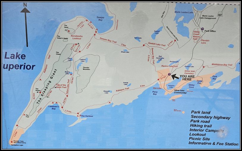 Although often referred to as the Sleeping Giant Trail, the hike to the Top of the Giant Lookout, Lake Superior Lookout and the Gorge combine several sections with varying levels of difficulty.